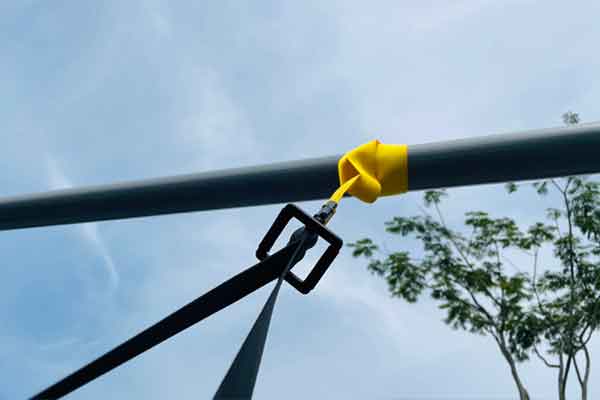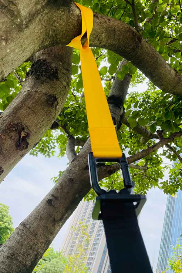 Attach it to a door, tree, or beam — fold it up when done.